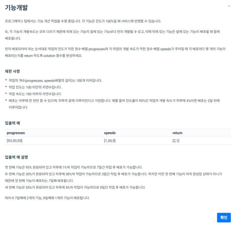프로그래머스) 기능개발