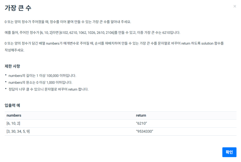 프로그래머스) 가장 큰 수