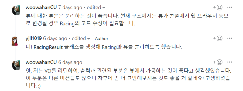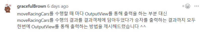 - 자동차 경주 프로그램은 프리코스때 한번 만들어봐서 수월할줄 알았으나, 페어프로그래밍이 처음이라 어려웠다.