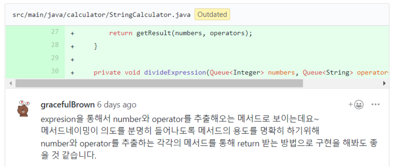 함수가 한가지 일만 잘하도록 최대한 메소드를 분리한것 같았는데도, 여전히 남아있었다.