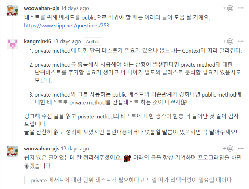 | 우아한 테크코스) 개발 피드백, 팁 모음 (종합) (0) | 2019.09.13 |