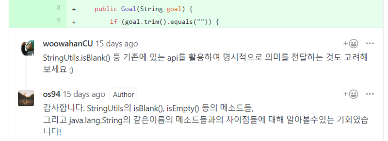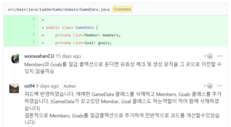 스스로도 걸렸던 부분인데, 만들고싶었던 Members, Goals 일급콜렉션을 만드니 controller를 비롯한 전체적인 코드가 훨씬 명확해졌다.