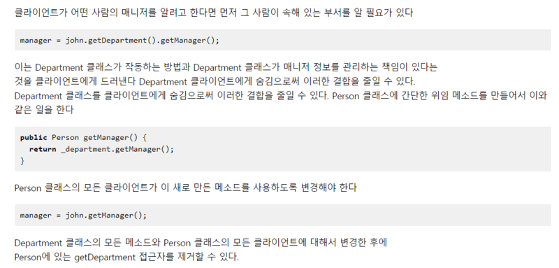 위와 같이 간단히 위임 메소드를 하나 추가해서, 디미터 법칙을 준수할수있다.