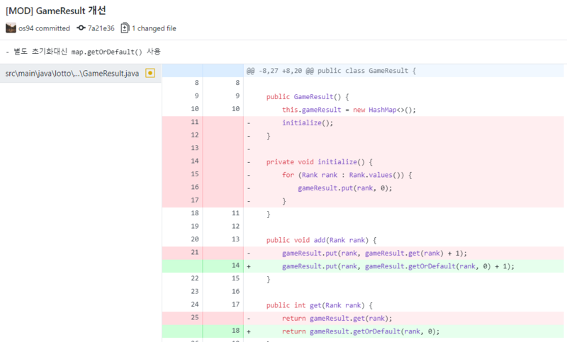 https://github.com/woowacourse/java-lotto/pull/31/commits/52fc9b16b0ec77233750c917056d08da1e483b2f