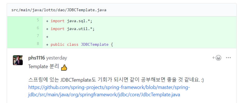 템플릿 : JDBCTemplate을 이용한 DAO 중복제거 => 이후 체스미션에서 적용해보았음.