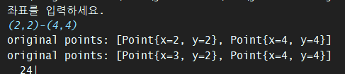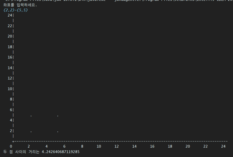 원래대로라면 (2,2)와 (5,5) 두점을 입력하였으므로 두점만 출력되야하지만,