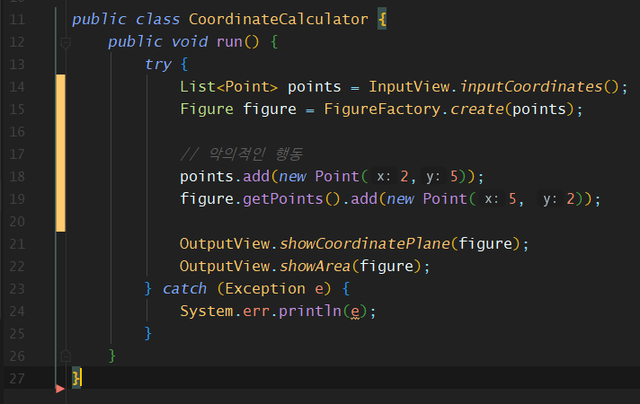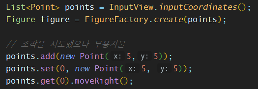 figure.getPoints().add(new Point(5, 2)); // 컨트롤러 19라인을 막아냈다.