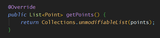 figure의 points에 대한, input경로인 생성자에선 깊은복사로 output경로인 getPoints()에선 unmodifiableList로 이미 리스트를 안전하게 만들었다.