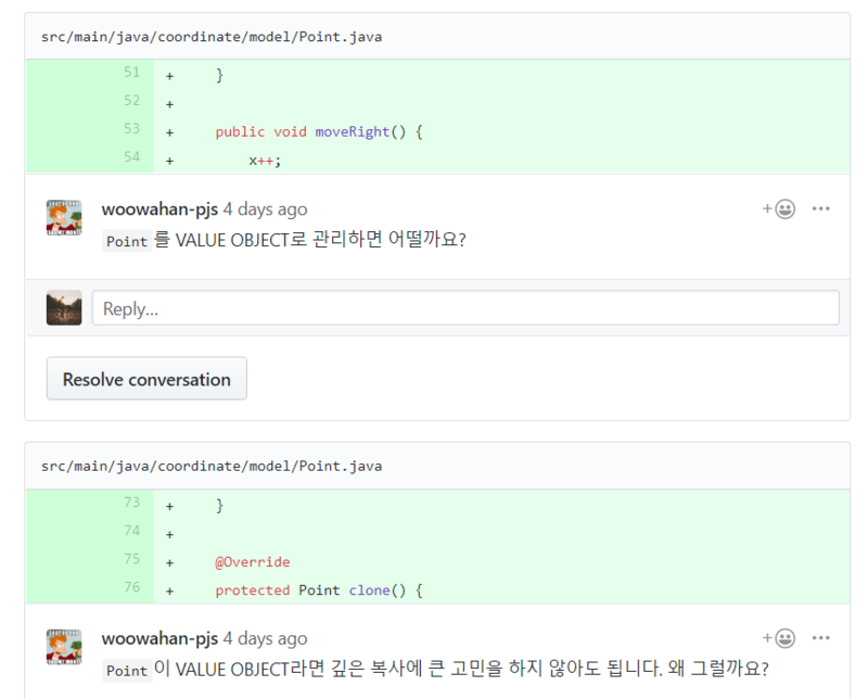 Point 클래스는 사실 클래스 이름부터가 자신을 VO로 만들어주라는 말을 계속 하고있었지만 난 애써 외면했던것 같다,,