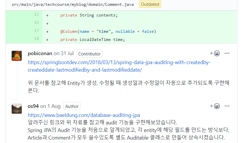 | 우아한 테크코스) Lv2 - 2주차 [블로그 - Spring Data JPA/회원 관련 기능 구현] 미션 후기, 코드리뷰 (0) | 2019.09.13 |