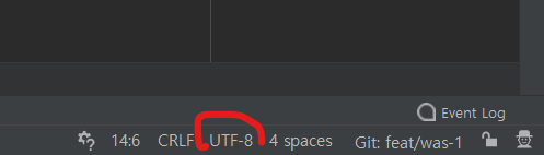 3. 인텔리제이 우측하단에서도 UTF-8 상태인것을 확인함