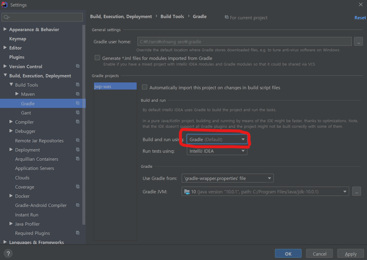 (아마도 인텔리제이 업데이트하면서 자동으로 default인 gradle로 바뀌어버린건아닐까;;)