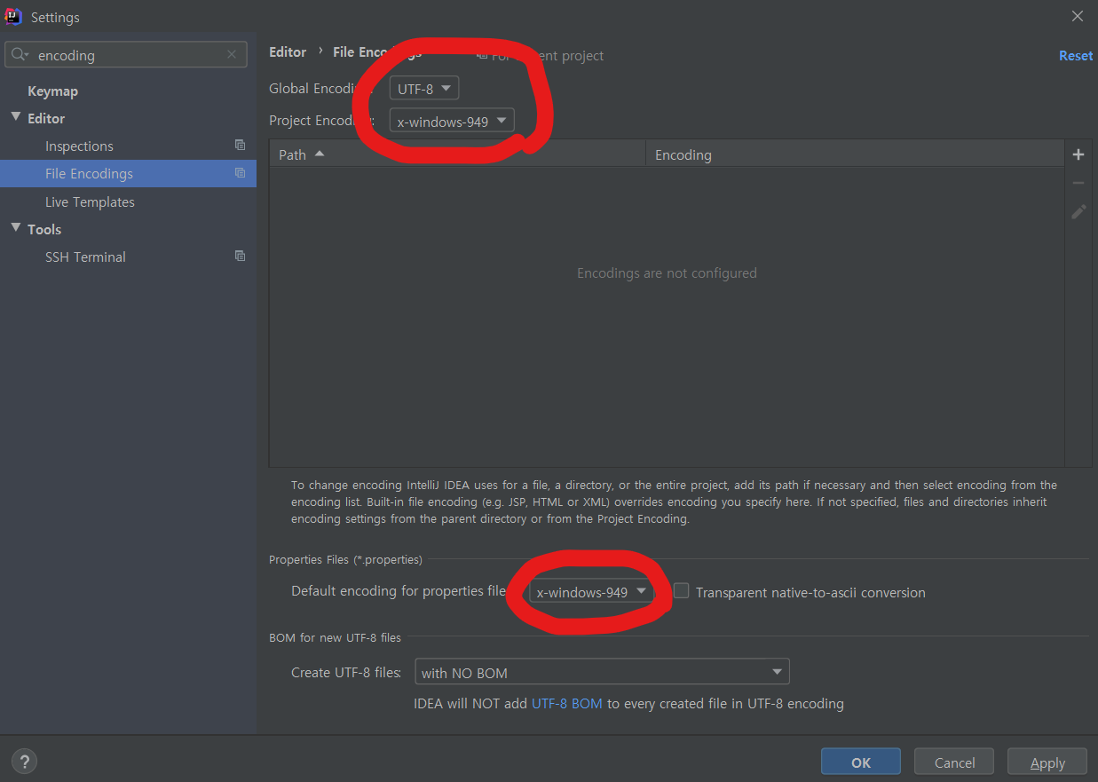 (Transparent native-to-ascii conversion에 관련된 내용도 나왔는데, 보여주는 방식을 결정하는것으로 체크유무가 본 이슈에 영향을 줄 것 같진 않음)