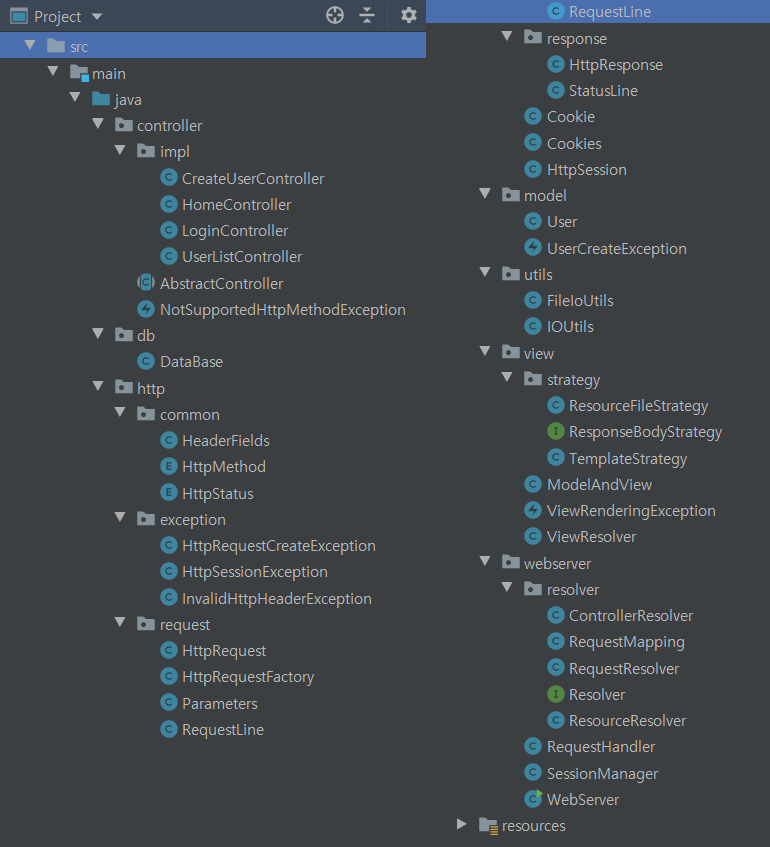 - HttpRequest/Response, Header, HttpMethod/Status, Cookie/Session, DispatcherServlet역할, 정적/동적 자원 요청을 구분하는 resolver 등 '정말 기본적인' WAS 역할의 서버 코드 구현