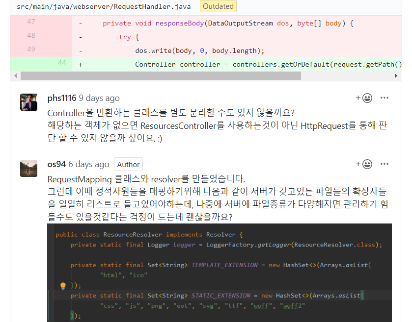 - 처음에 엄청 무겁던 `RequestHandler` 클래스가 리팩토링을 거치며 분리를 거듭해 깔끔해졌다.