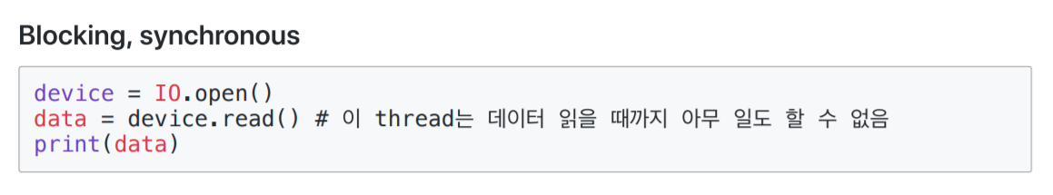 - 앞서 애플리케이션 개발에서의 Sync/Async가 애플리케이션 코드 관점이었다면, 이번엔 IO 처리 관점 (파일IO, 소켓IO 등...)