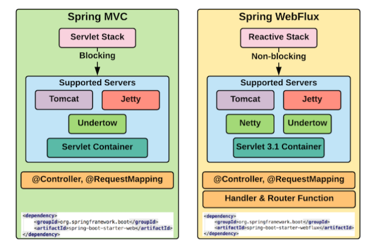 Spring MVC - Spring MVC는 Servlet기반의 본질적으로 sync/blocking 방식이다. 따라서 스프링도 Reactive Programming을 지원하기 시작
