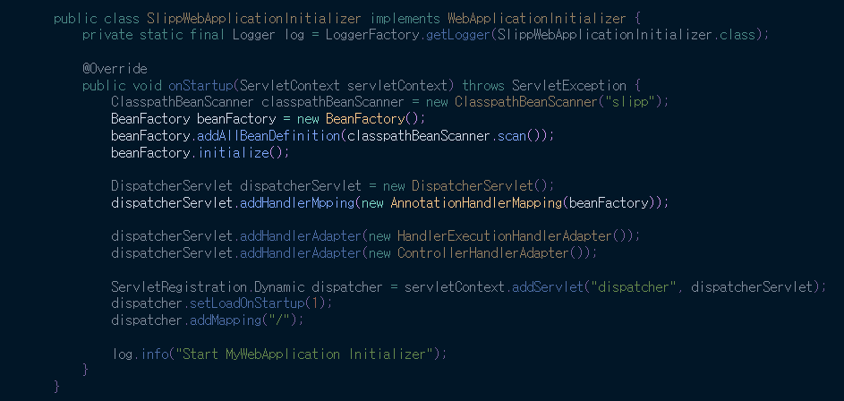 - BeanFactory와 BeanScanner 사이의 관계를 담당시킬수있었다. 덕분에 사용하는 쪽에서 코드가 훨씬 간결해지고 내부사정을 몰라도 되게 되었다. 사실 이게 없었다면, BeanFactory와 BeanScanner 사이를 잘못연결하면 터지는 거니까.