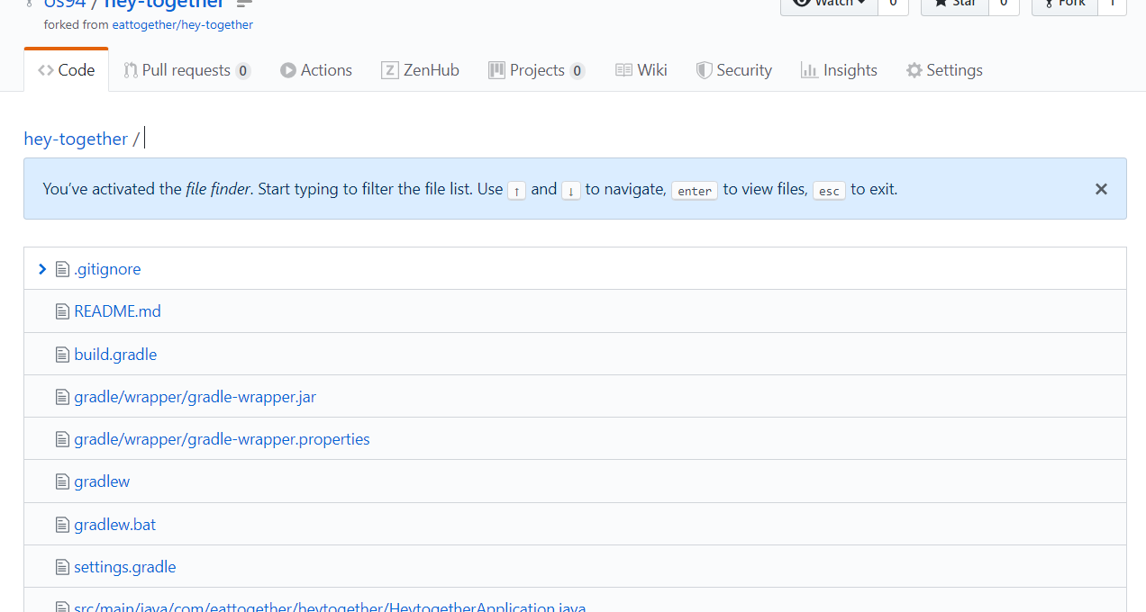 Find file버튼을 눌러 검색할수도 있지만, 단축키를 활용하면 훨씬 편하다.