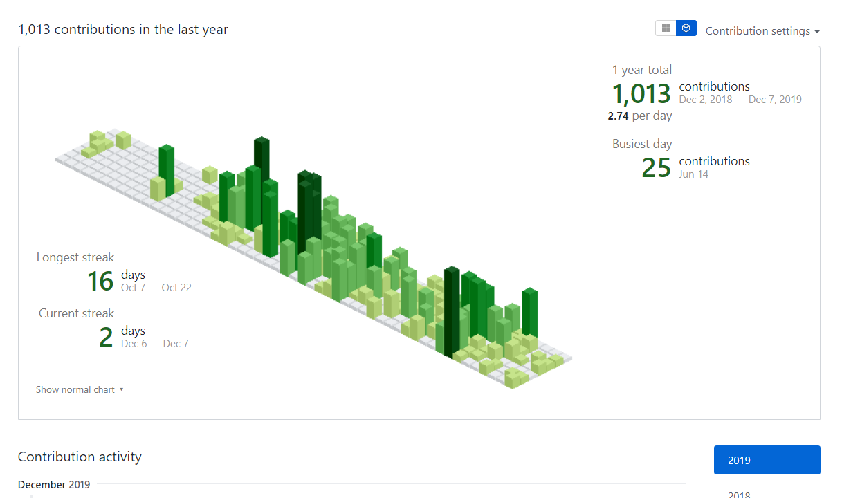 - Github 잔디밭을 입체 형태로 이쁘게 보여준다. 뒷부분이 조금 가려지긴 하는데 원래 형태로 나오도록 선택할 수 도 있다. 무엇보다, 이쁘니까..!!
