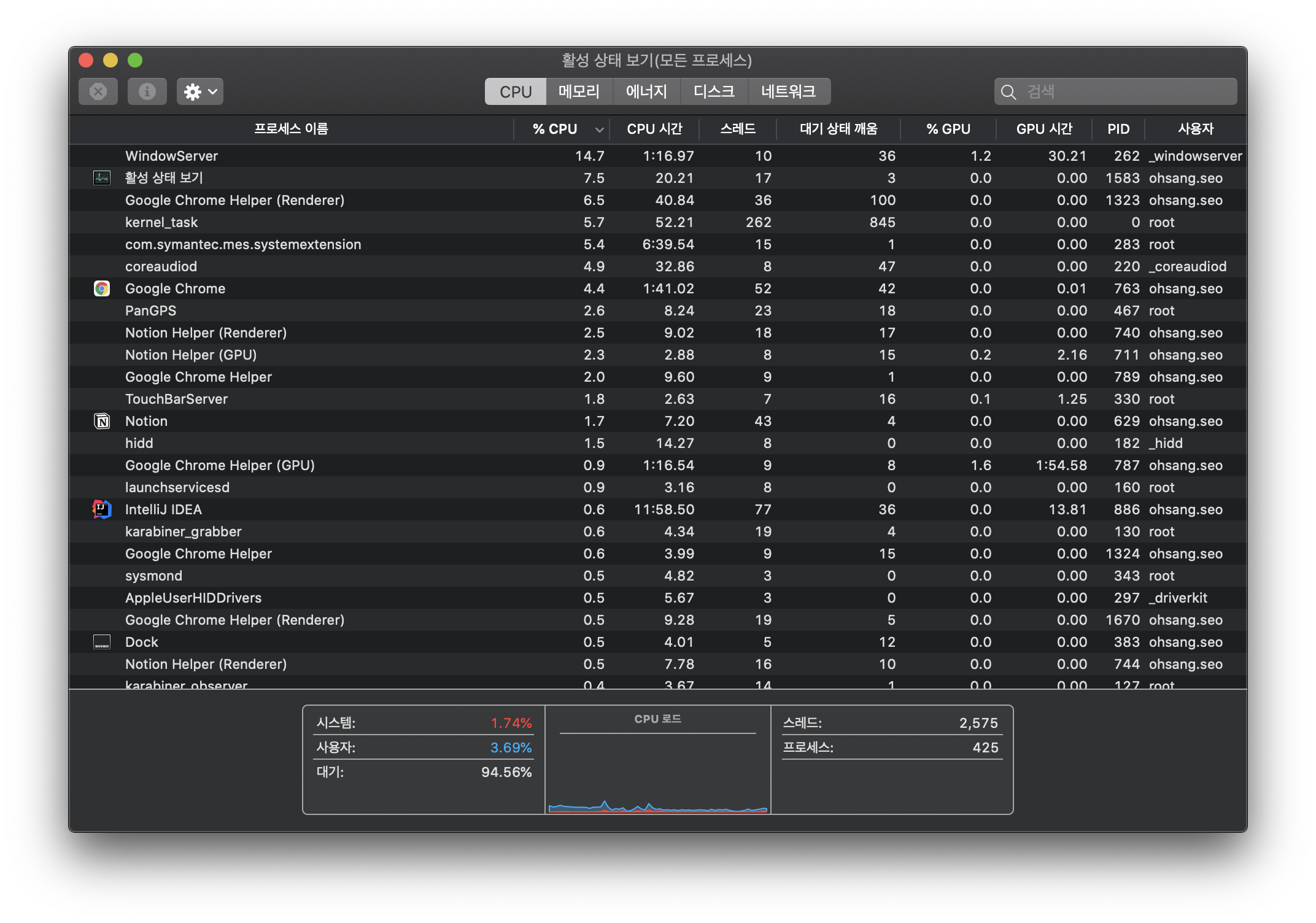 종료시켜주니 이제야 맥이 좀 쉰다,, 고생시켜서 미안 😢