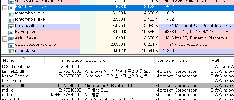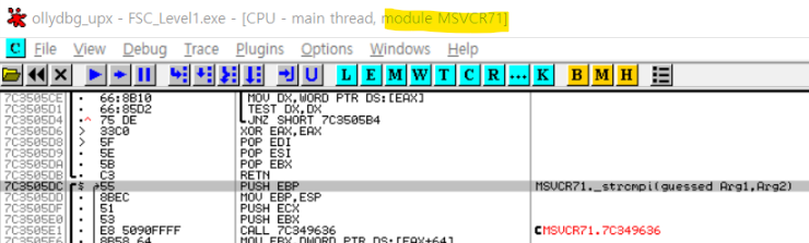 7C3505DC처럼 새로운 주소이고, FSC_Level1 => MSVCR71 module로 이동했음을 확인할수있다.