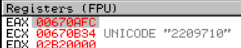 그렇다면, 비슷하게 ecx쪽을 보면 '2209710'이라는 unicode가 들어있다.