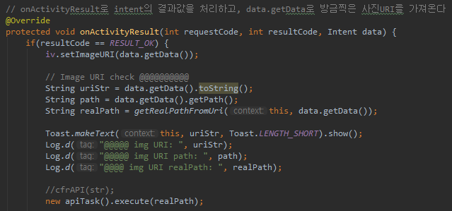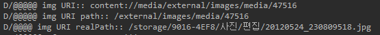 4. realPath : 3번의 부정확함으로 필요했던, 실제 사진 path (getRealPathFromUri 사용자함수 사용)