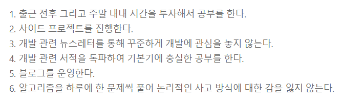 - 개발 관련 뉴스레터, SNS를 통한 꾸준한 관심 : 페이스북과 슬랙 등을 통해 평소에 꾸준히 다양한 자료들을 접하는 중