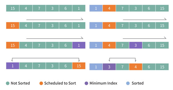 0번째 자리와 '1번째-N-1번째 중에서 가장 작은 값'을 교환,