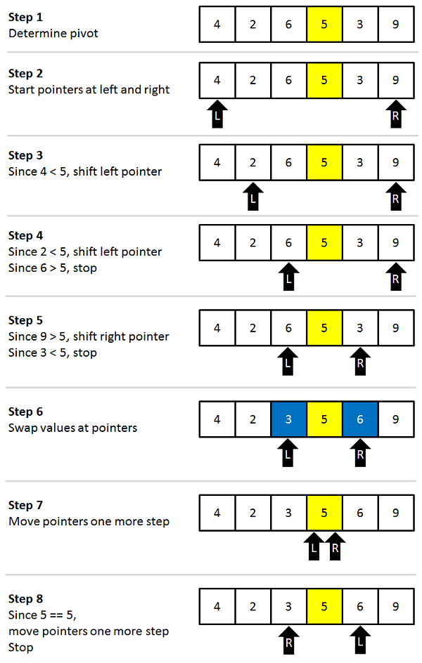 - pivot을 설정하는 방법이 다양하고, 이에 따라 성능이 결정된다. (pivot을 좌우끝값 또는 중앙값으로 등등..)