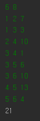 int selected = 1, result = 0; // start vertex = 1로 시작. result is sum of weight
