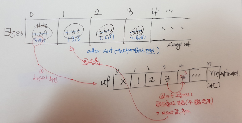 ArrayList<Node> Edges = new ArrayList<Node>(); // 간선 집합. 추후 sort()를 이용해 오름차순으로 정렬됨