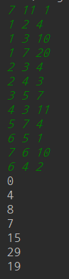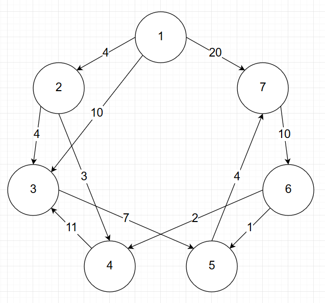 첫 줄에 정점의 개수 N과 간선의 개수 M, 그리고 시작 정점 S가 주어집니다. 다음 M줄에 간선의 관계 시작정점 u와 도착정점 v 그리고 간선 가중치 w가 주어집니다. |