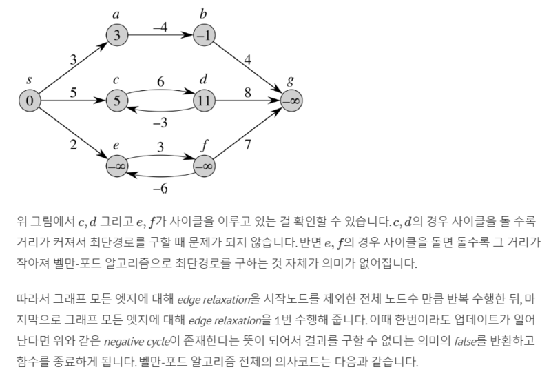 대신 dijkstra와 달리, 음수weight를 갖는 그래프에서도 동작하며, 음수사이클을 찾아내는 기능도 한다.