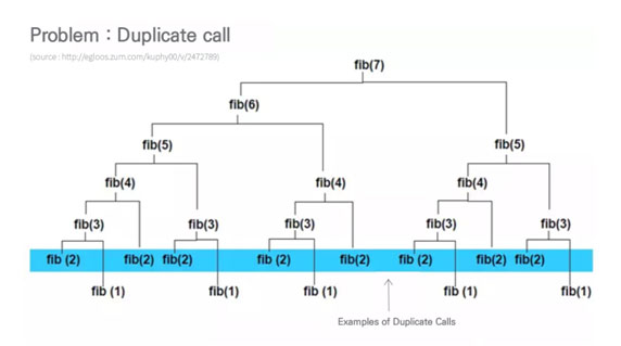 => Memorization : 한번 계산된 값을 기록해두고 이후 중복호출 되었을때 새롭게 계산하는게 아닌 저장해둔값을 가져와 사용한다.
